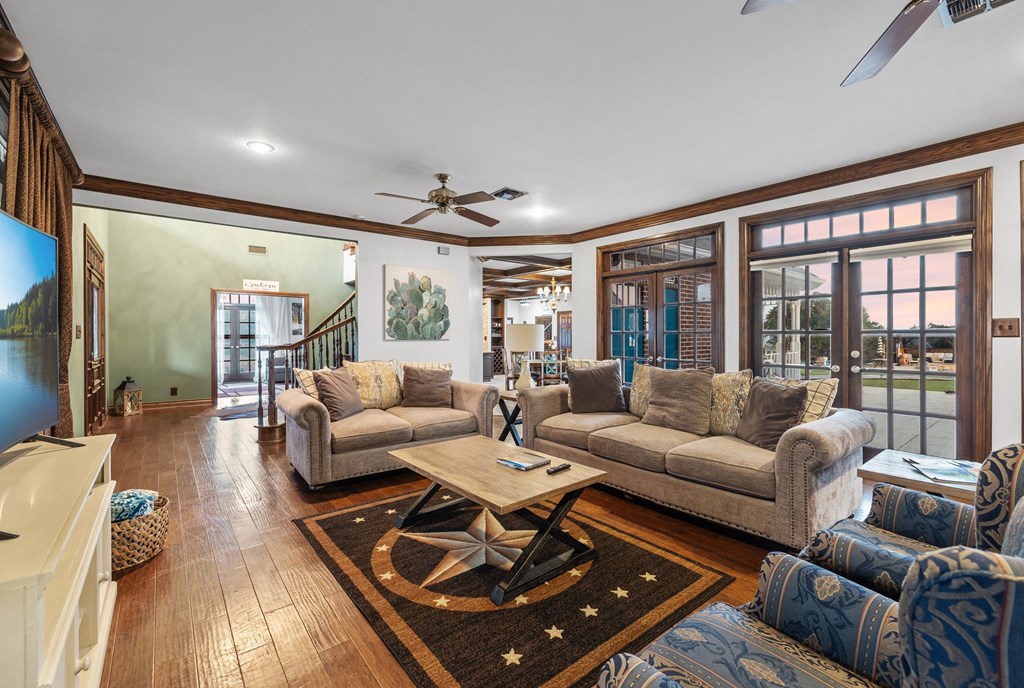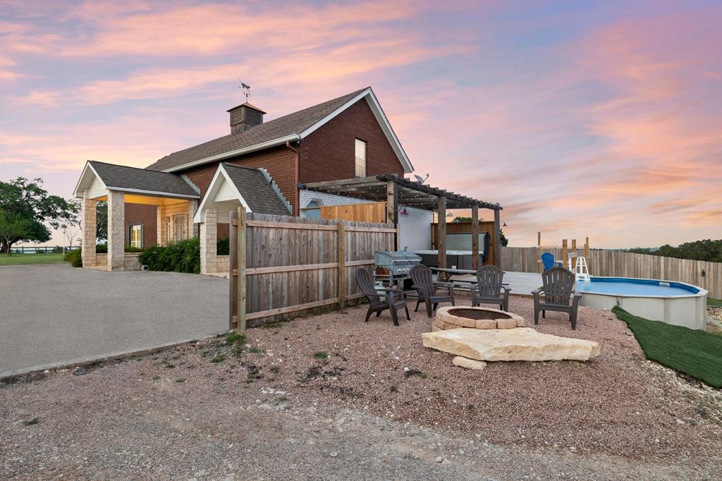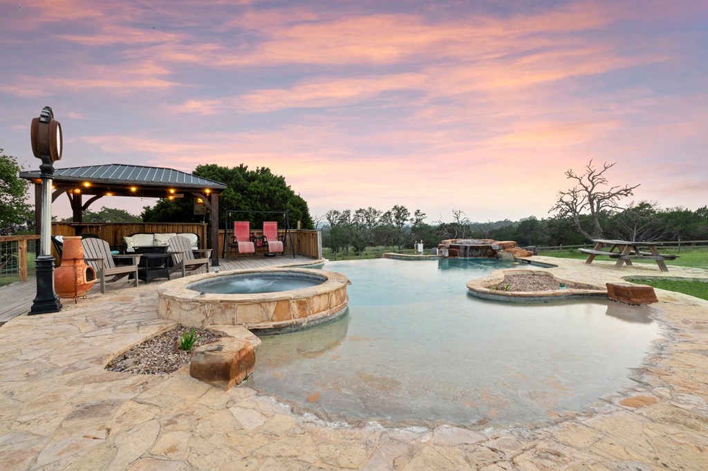 Amazing Hill Country Views! With limited restrictions, imagine the possibilities for venue, winery, B&B compound and more! This stunning 50-acre hilltop estate is just one mile off 290 and features a total of 8 bedrooms and 7.5 baths. The main house offers 4,000 sqft of quality craftsmanship, featuring 4 bedrooms, 3.5 baths with hardwood floors, cross beam ceilings, custom built in cabinetry, a grand entry staircase, four fireplaces and a resort style infinity edge pool and spa. The adjacent guest house boasts 2,400 sqft with 3 bedrooms and 2 baths with its own private pool, hot tub and patio. A large semi-finished barn also features an additional bedroom and two baths equipped with a chicken coop and horse stalls. This Fredericksburg Oasis is fully fenced and has a private entry gate along with multiple ponds. Embrace the tranquility and elegance of hilltop living.