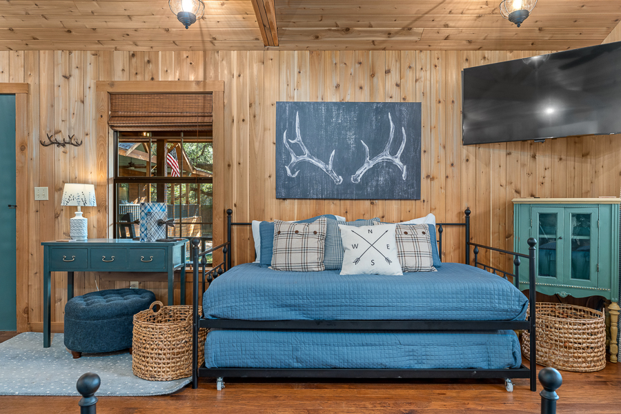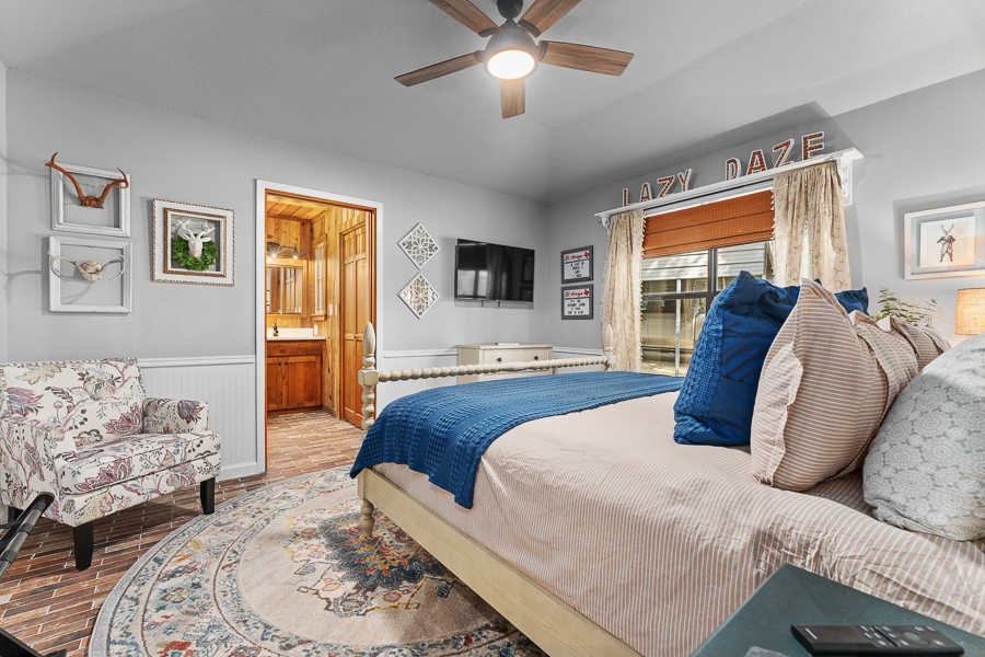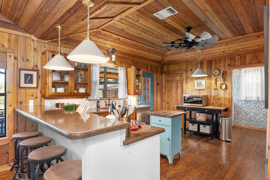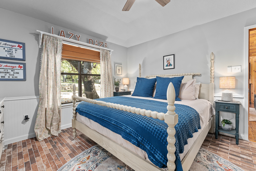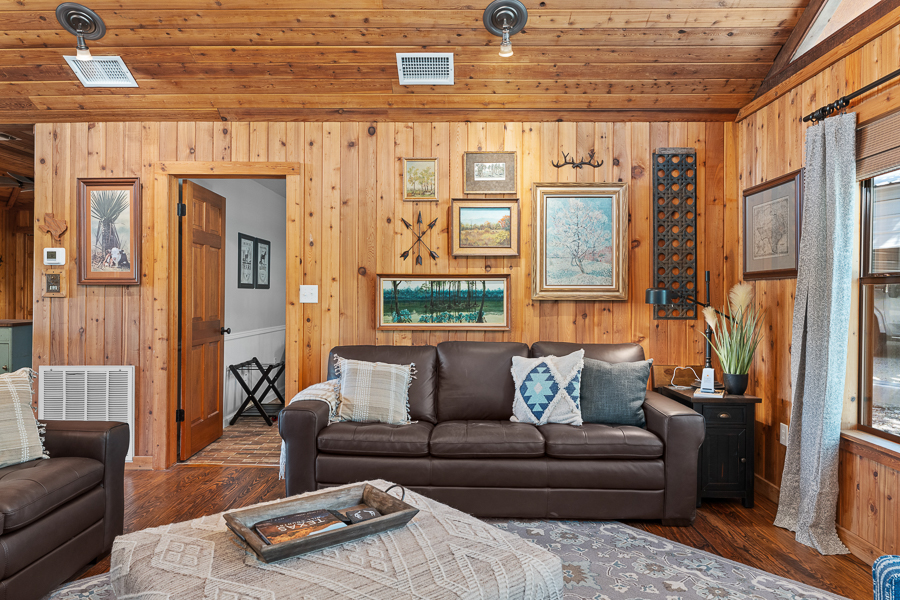 Escape to Lazy Daze on the Frio! This is active short term rental is being sold turnkey with all furnishings and housewares. Located on the banks of the Frio River on just over 2.1 acres this home has city water with a grant pending to bring city sewer to all homes surrounding. Wooded lot with access stairs down to the Frio River offering so many great swimming spots. Recent updates include, paint, floors, lights-plumbing fixtures, wallpaper, and landscaping. Showcasing wood and porcelain tile floors, this home has no carpet and is perfect to accommodate all your river guests. Popular short term rental as seen on Air BNB with almost a 5 star reviews. Perfect spot to park money and earn income, while blocking out your favorite weekends to enjoy the sites and sounds of the Frio River. Detached guest house with full bath, kitchenette, and recently installed mini split is the perfect place for extra guests to unwind. Metal barn with 2 car carport adjacent to the home. Half bath located on the rear porch is perfect for trips back and forth to the river. Recent outdoor shower completed and a solar power security gate at the street. Less than 5 minutes to Leakey where you can explore restaurants and bars. 15 minutes to Garner State Park or 20 minutes to Lost Maples State Park.